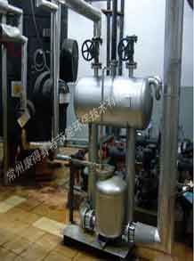 通常冷凝水可以通過疏水閥很方便地排出設(shè)備,進(jìn)入冷凝水排放系統(tǒng),如果冷凝水已經(jīng)被污染,則應(yīng)該直接排放掉;如果沒有污染,可以將其回收到鍋爐給水箱以利用冷凝水含有的熱量,這樣同時也節(jié)省了水和水處理的費用。有時用汽設(shè)備內(nèi)部會產(chǎn)生真空,這樣會影響冷凝水的排出,從而影響蒸汽換熱效率,這時冷凝水就需要用泵壓出去。